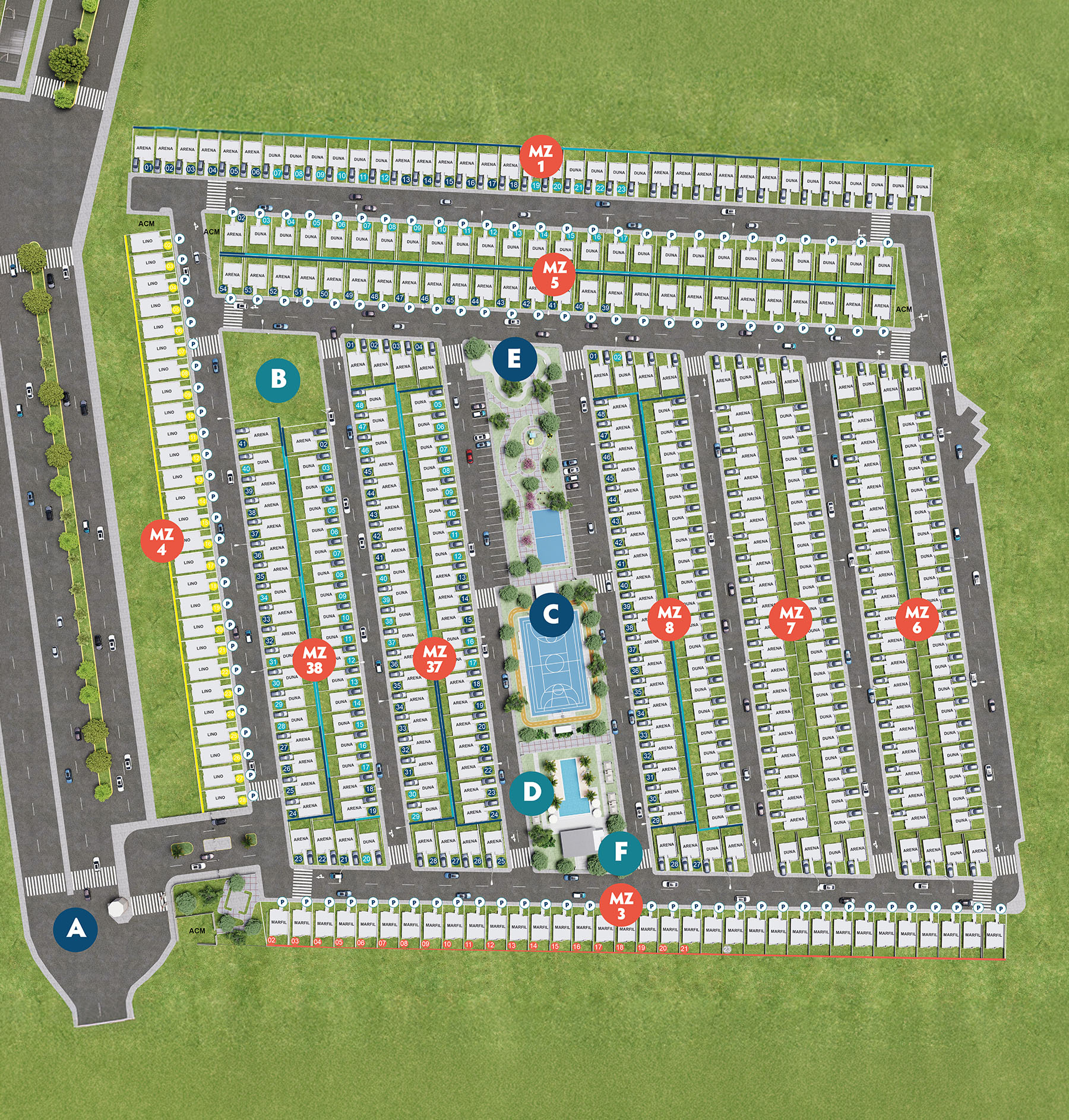 Canchas, parques, áreas de recreación y zonas de vegetación que te permitirán a ti y tu familia vivir un estilo de vida diferente.